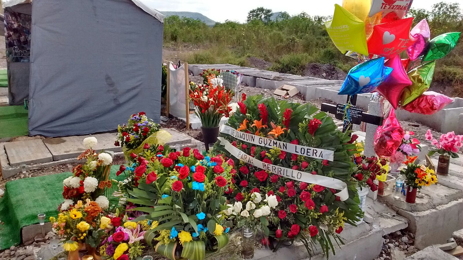 En el panteón Jardínes del Humaya en Culiacán donde yacen un montón de narcos de la región y se pueden observar un emplazamiento de mausoleos gigantes que parecen apartamentos de una habitación con majestuosas cúpulas de vivos colores fue colocada en una cripta otra ofrenda supuestamente enviada por El Chapo.