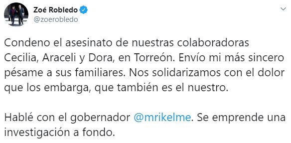 Esta mañana, el secretario del IMSS en Coahuila, Javier Guerrero, escribió que los hechos suceden en un contexto en el que los trabajadores de la salud son elementos importantes, por lo que prometió actuar con determinación sobre el crimen.