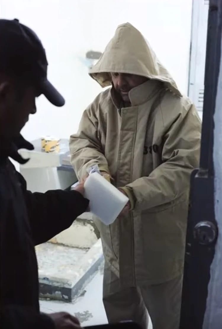 En otro momento los custodios le entregan una chamarra, una colchoneta y dos rollos de papel de baño.