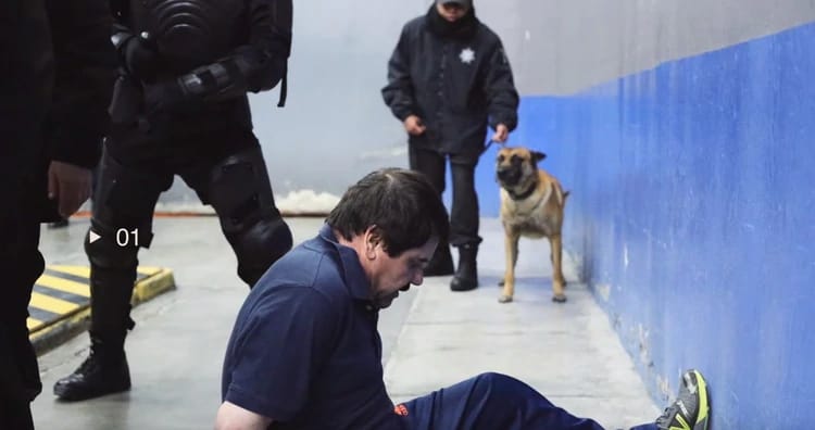 En el contenido presenta el momento en el que el fundador del cártel de Sinaloa fue identificado como el reo 3870. Cómo fue registrado por policías y olfateado por perros.